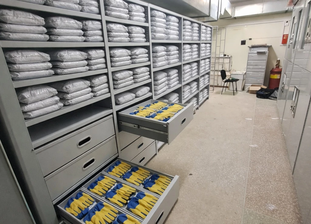 Выдвижные ящики используются для хранения перчаток, касок и противогазов и мелких СИЗ. Удобны для организации адресного доступа к каждому предмету.